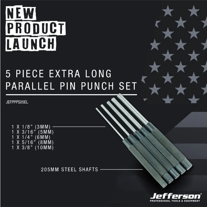 Jefferson 5 Piece Extra Long Parallel Pin Punch Set